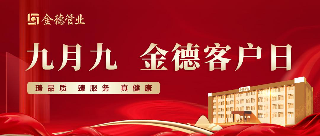 2023-10-02 金德管業集團 3146金德管業集團首屆“九月九客戶日”將于2023年9月9日與廣大客戶相約!本次活動,我們將帶來豐盛的福利回饋,提供高品質客戶福利,搭建開放的互動橋梁,持續擦亮金德管業“瑧品質 臻服務 真健康”品牌形象。